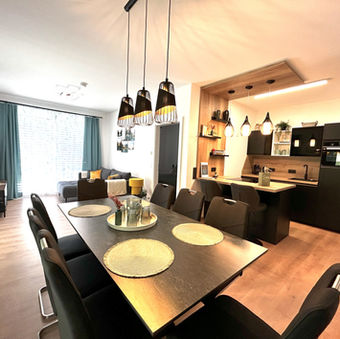 Entdecken Sie unsere voll ausgestattete Küche, die alles bietet, was Sie für einen komfortablen Aufenthalt benötigen. Ausgestattet mit einem Geschirrspüler, Backofen und einem modernen Induktionskochfeld, können ganz nach Belieben kochen.